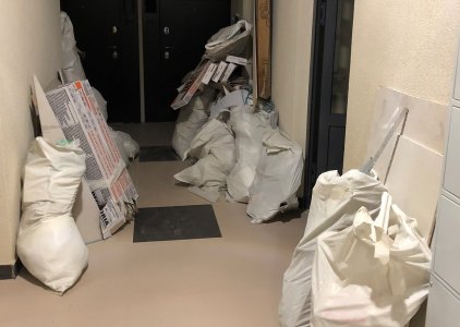После выполнения ремонтных работ работники вывезут оставшийся строительный мусор из объекта. Остатки стройматериалов будут упакованы в мешки и вывезены на спецтранспорте. Все это будет осуществляться примерно в такой последовательности: